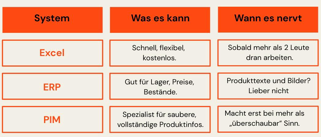 PIM vs. ERP vs. Excel: Wer kann was?
