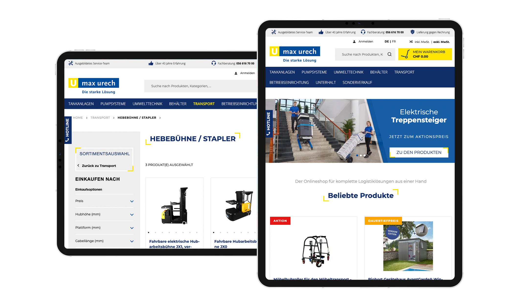Max Urech AG setzt mit seinem optimierten Adobe Commerce (Magento)-Shop neue Massstäbe im Logistik-E-Commerce. Smarte Such- und Filterfunktionen sowie die Integration in Microsoft Business Central ermöglichen einen schnellen Zugang zum vielfältigen Sortiment – perfekt abgestimmt auf die hohen Anforderungen der Logistikbranche.